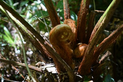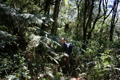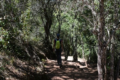 Arrivé au parking, Félix nous dépose et nous commençons notre ascension en direction de la forêt. En ce début de parcours, Carmelo nous explique les usages de différentes plantes médicinales. L'ascension est de plus en plus raide au fur et à mesure que l'on s'enfonce dans la forêt. Et oui le parcours que l'on a choisi partait de 2000m d'altitude pour culminer à 2500m. Mais on ne fait que monter et descendre. La forêt est de plus en plus dense et les plantes sont toujours plus hautes et impressionnantes (les Fougères surtout, certaines culminant à 10m). Notre cheminement se fait au rythme des explications de Carmelo sur la faune et la flore du parc.