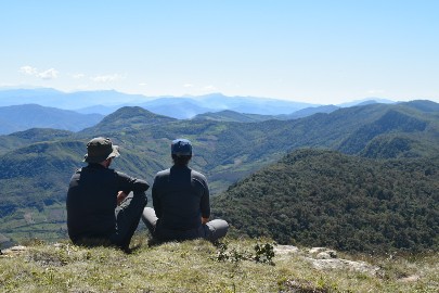 Au bout de 4h de marche, nous arrivons au sommet et nous arrêtons pour déjeuner. La vue est imprenable sur l'ensemble du parc Amboro. Carmelo nous explique les différentes régions de la faune et nous apprend que le puma est un peu en voie de disparition contrairement au jaguar qui s'étend de plus en plus.